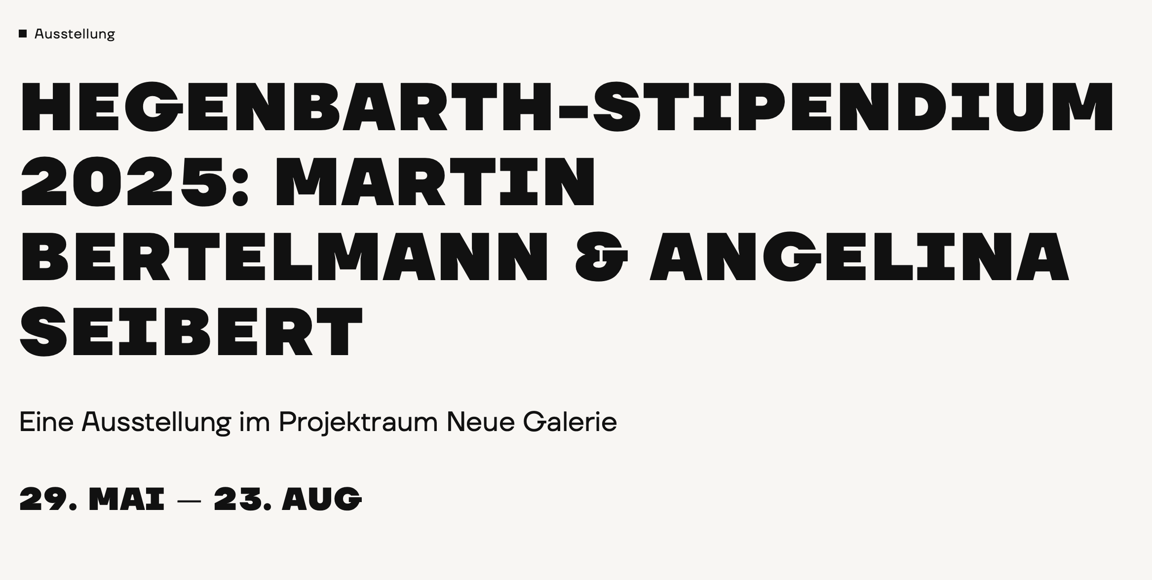 „Die Dresdner Stiftung Kunst & Kultur der Ostsächsischen Sparkasse Dresden vergibt, gemeinsam mit dem Programm »Deutschlandstipendium«, jährlich zwei Projektstipendien an herausragende Meisterschülerinnen und Meisterschüler der Hochschule für Bildende Künste Dresden. Die Ausgezeichneten des Jahres 2025/2026 sind Martin Bertelmann und Angelina Seibert. Im Anschluss an ihre Förderzeit präsentieren sie aktuelle Werke im Projektraum der Städtischen Galerie Dresden.“